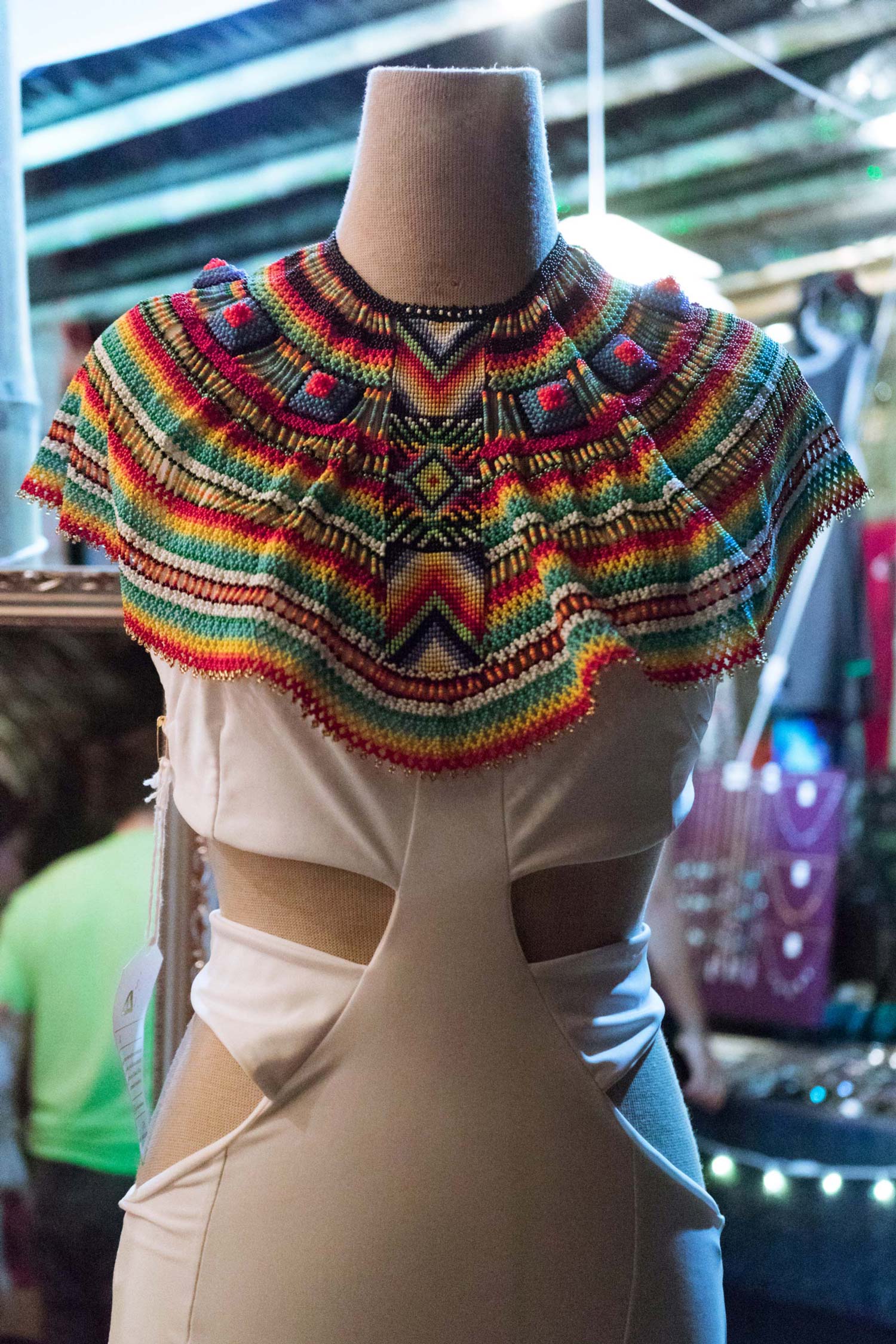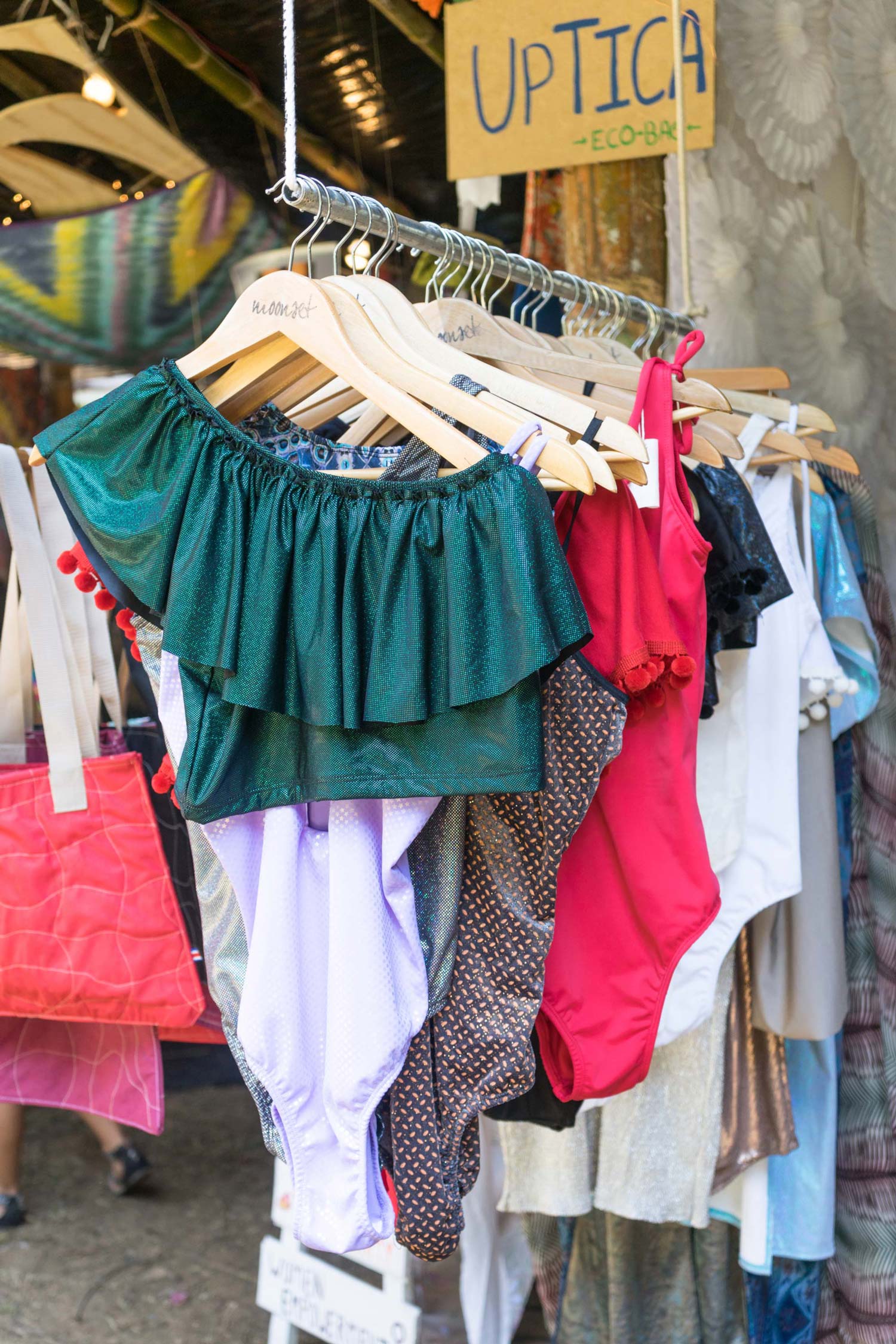 Neben den Essensständen gab es natürlich auch Verkäufer die ihre Ware in kleinen Marktständen anboten. Die Kleidung an den Marktständen war ganz Festiviallike: Bunt, verrückt, glitzernd, hippie und auch mal alternativ. Besonders gefielen mir die bunten Perlenaccessoires die hangemacht von Indigofrauen geknüpft werden und so kaufte ich mir auch eine große Perlenkette für den Hals. Tipp: Gehe zu den Ständen am Strand, diese sind etwas günstiger und kaufe gegen Ende des Festivals ein, so lässt sich noch etwas besser verhandeln, weil die Händler ihre Ware lieber nicht wieder mitnachhause nehmen möchten.