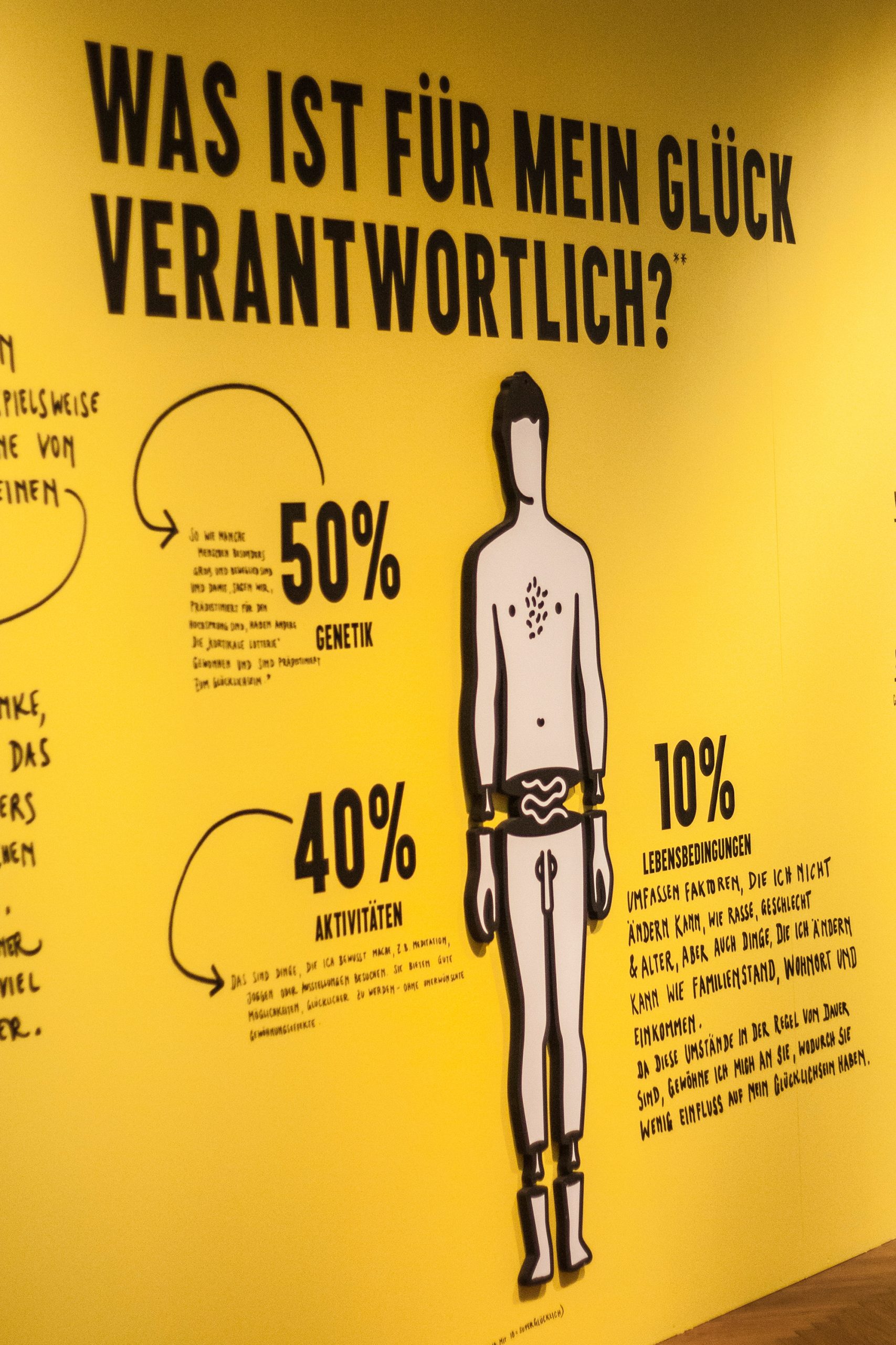 Der gebürtige Österreicher lebt und arbeitet mittlerweile in New York City und gönnt sich alle sieben Jahre ein Sabbatical, das bedeutet er nimmt sich ein Jahr Auszeit von seinem Job. Dabei füllt er seine kreativen Reserven wieder auf und dies scheint ihm auch immer wieder erfolgreich zu gelingen. In seiner Ausstellung über das Glück gibt er uns Einsicht in seine persönlichen Erfahrungen die er auf der Suche nach der flüchtigen Emotion gemacht hat. Auf witzige aber auch nachdenkliche Art und Weise nimmt er die Aufmerksamkeit des Besuchers in Anspruch, sodass gut und gerne 3-4 Stunden vergehen bis man merkt das man nun alle Exponate gesehen und erfahren hat.