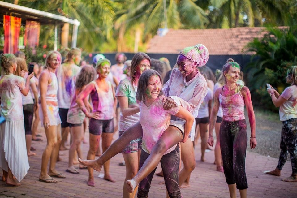 Das Farbbaden war eine willkommene Abwechslung zum streng nach Plan laufenden Yogaalltag. Danach sprangen wir zur „Abkühlung“ ins nahe gelegene 25°C warme Meer.