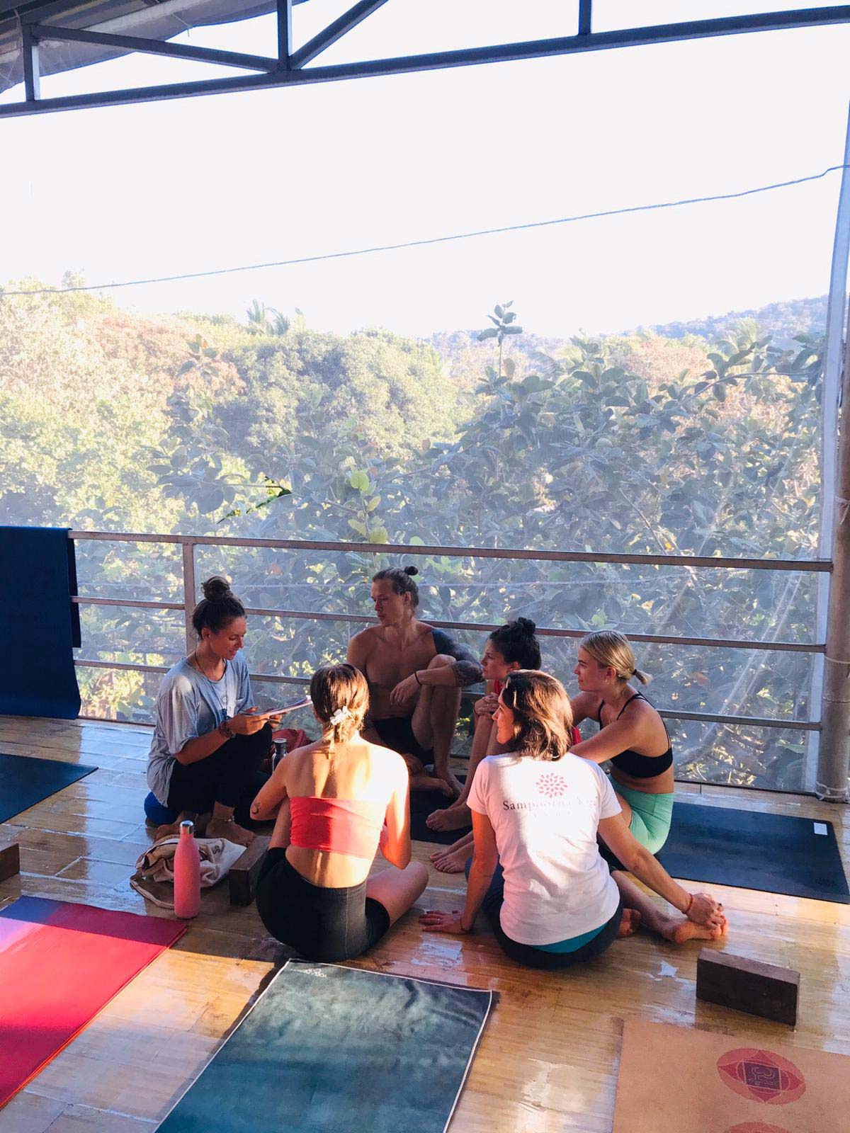 Für die praktische Prüfung unterrichteten wir eine kleine Gruppe mit einem von uns erstellten Yoga-Flow. Die schriftliche Prüfung enthielt Fragen zu allen Themen die unterrichtet wurden: Anatomie, Philosophie, korrekte Ausrichtung der Yoga-Posen, Namen der Yogaposen in Sanskrit, usw.